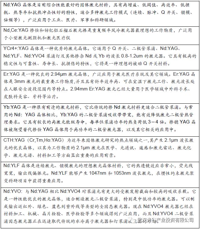 激光晶体是增益介质,目前主要可以使用的有20种,波长一般较为固定,常用的主要有以下八种: